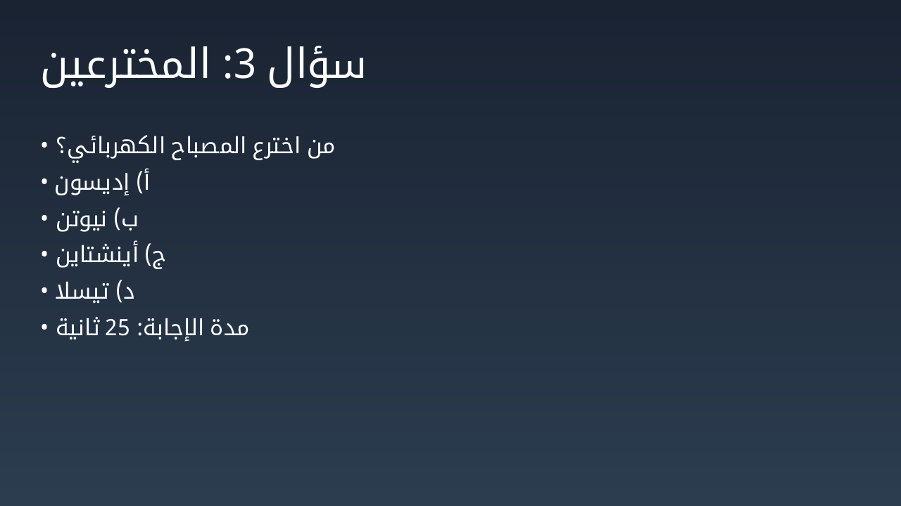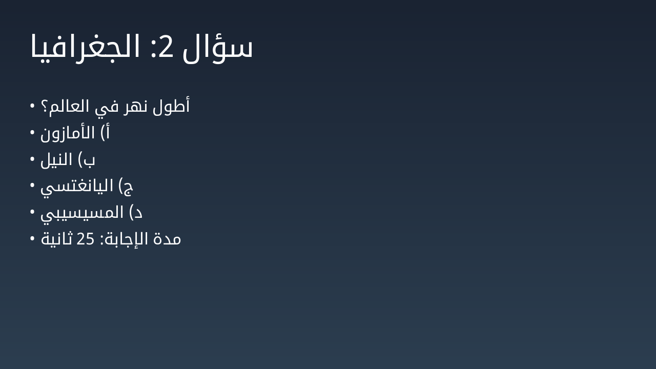 25 ثانية لكل سؤال لضمان الإجابة السريعة والدقيقة.