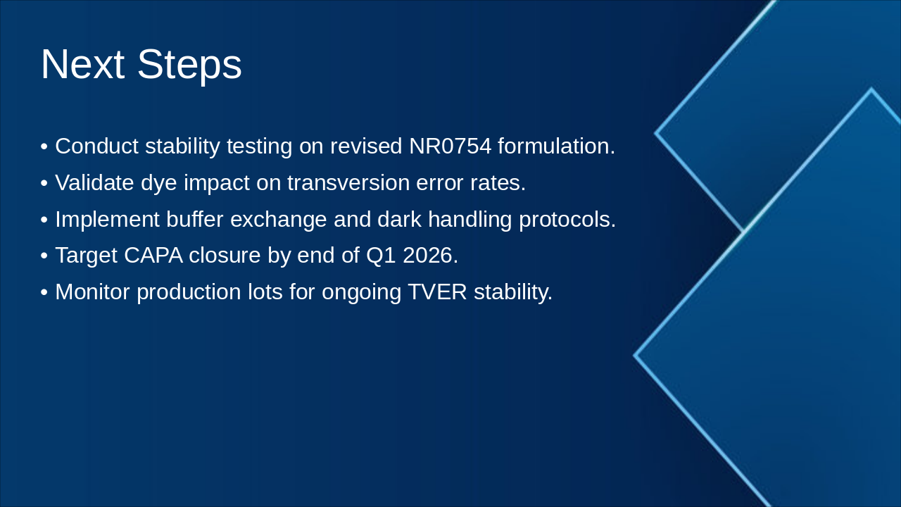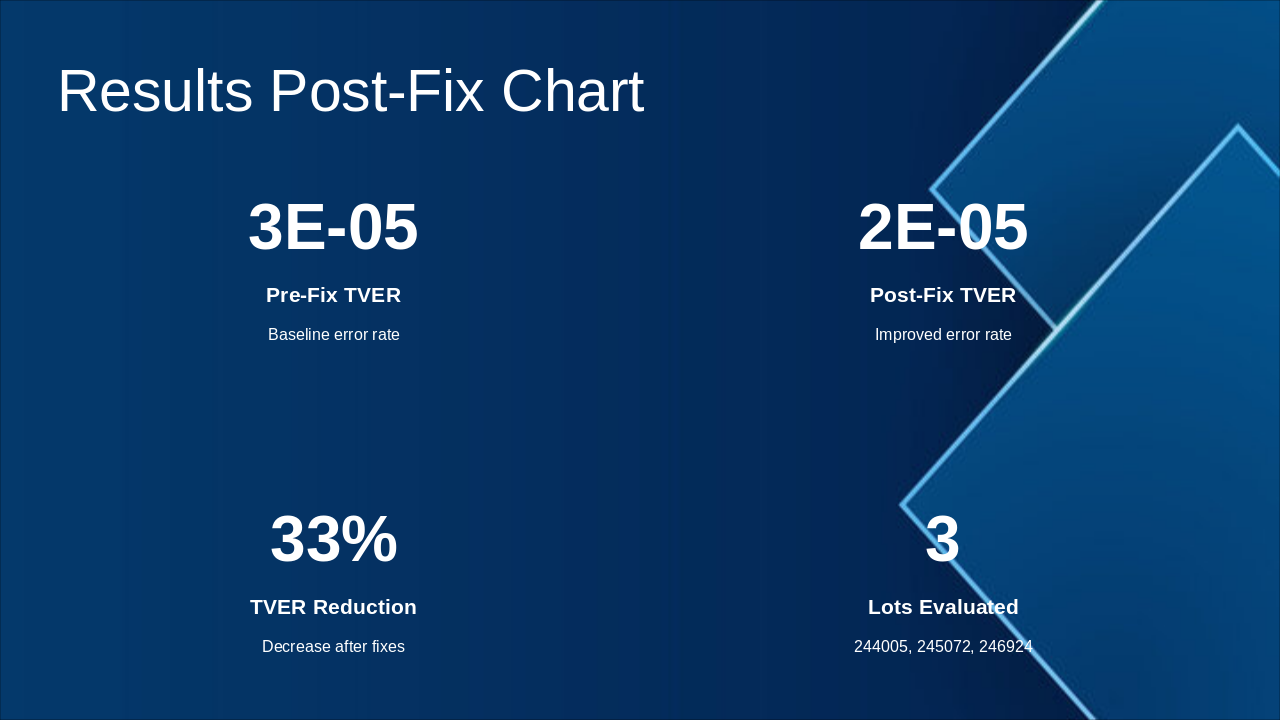 Post-fix TVER reduction, stability testing, and lessons learned. Source: NR0754 Run Control – Production Issue Summary & Resolution Status (Dec 2025)