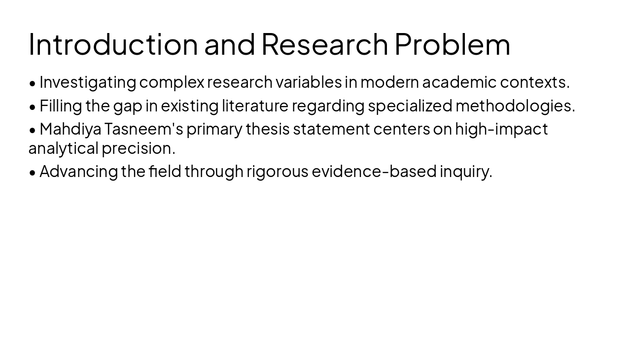 Regenerate the presentation and ensure a working accessible link. Same content and premium research defence theme as before for Mahdiya Tasneem dissertation. Ensure link works.