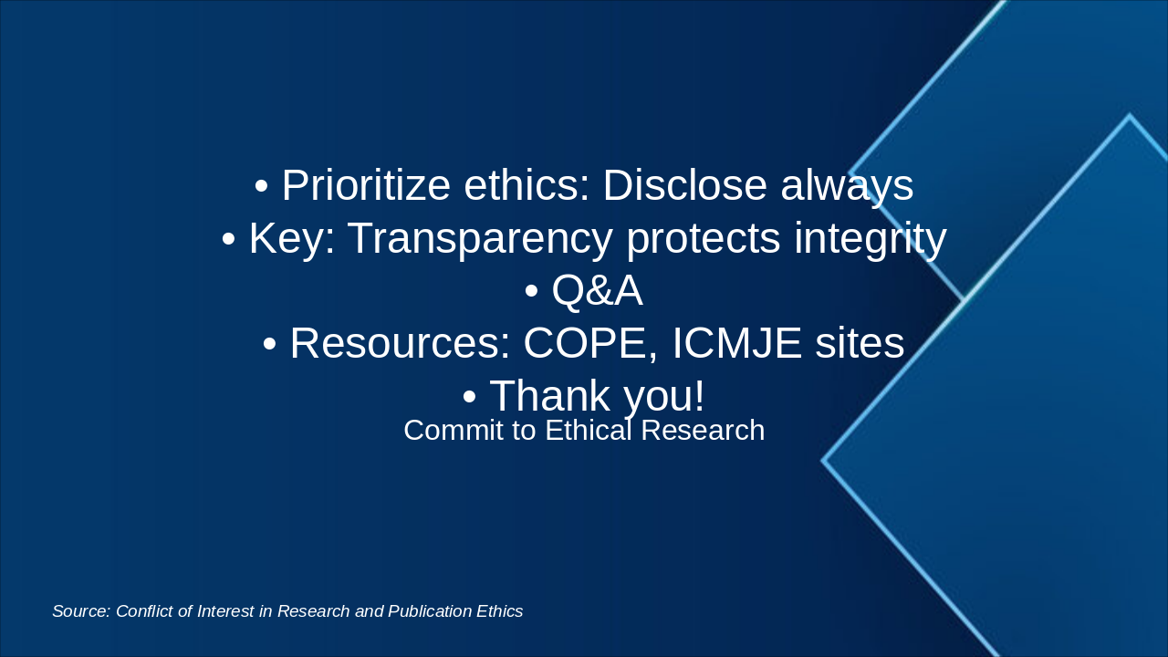 Conflict of Interest in Research and Publication Ethics
