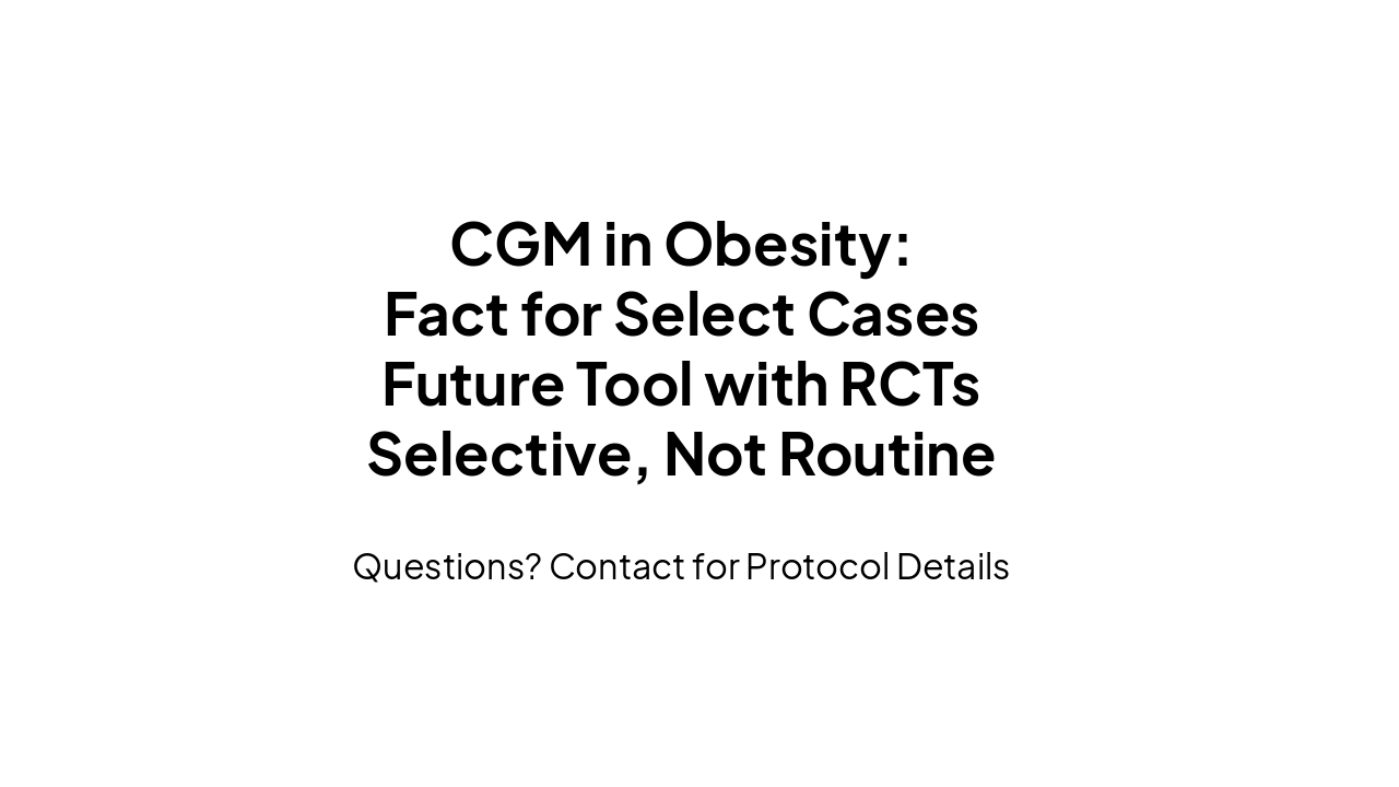 CGM in Obesity: Fact for Select Cases Future Tool with RCTs Selective, Not Routine