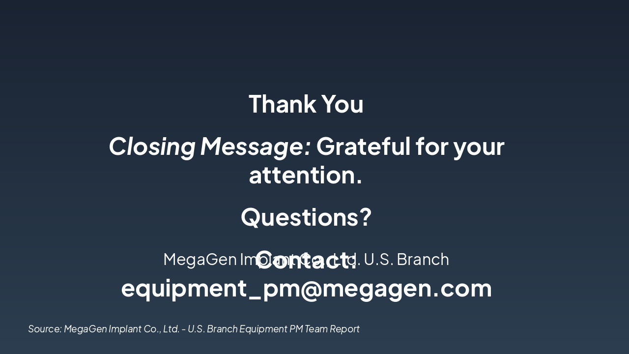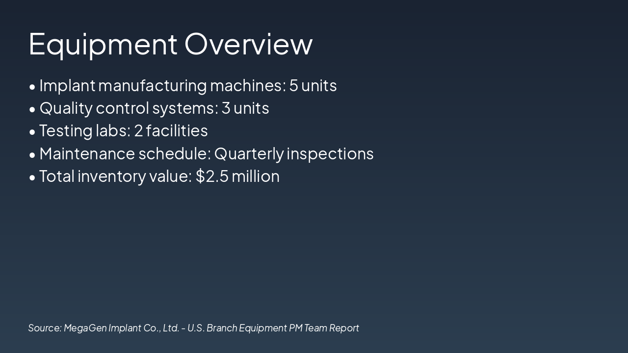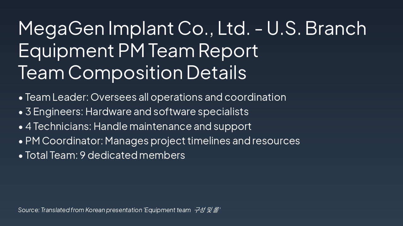 MegaGen Implant Co., Ltd. - U.S. Branch Equipment PM Team Report [Translated from Korean Presentation 'Equipment team 구성 및 롤']