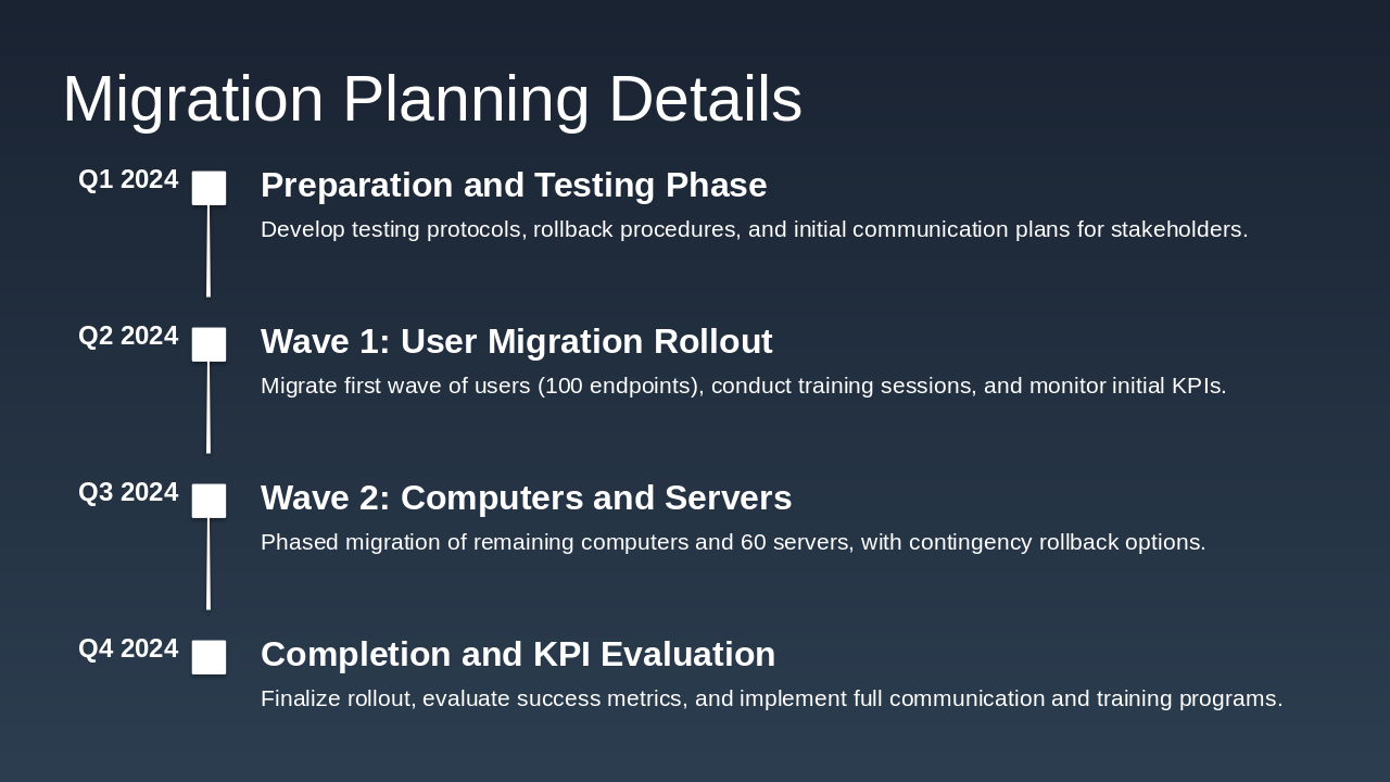 Source: Discovery, Design, and Implementation Roadmap. Overview of modernizing AD with Entra ID for unified, secure identity. Scope: 265 endpoints, around 60 servers.