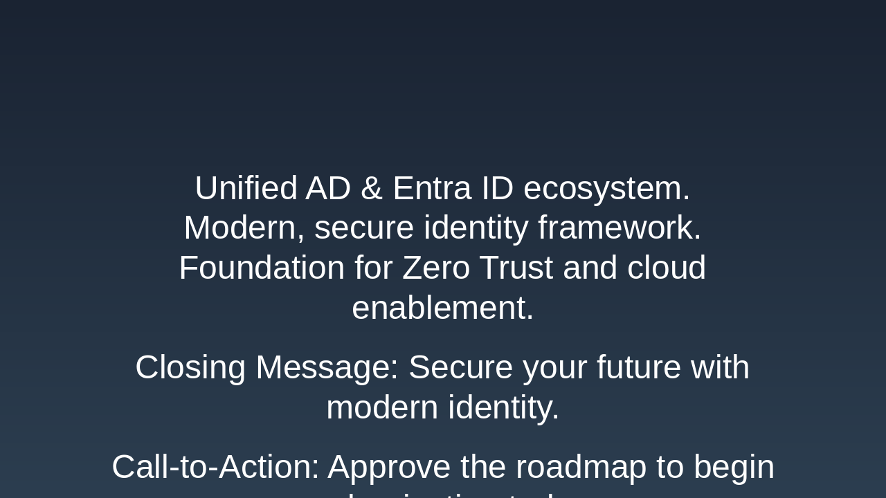 Slide 1 - Active Directory & Entra ID Consolidation and Security Modernization