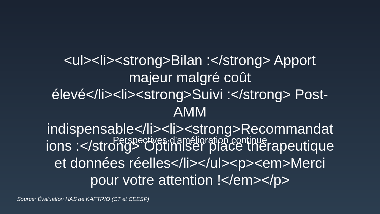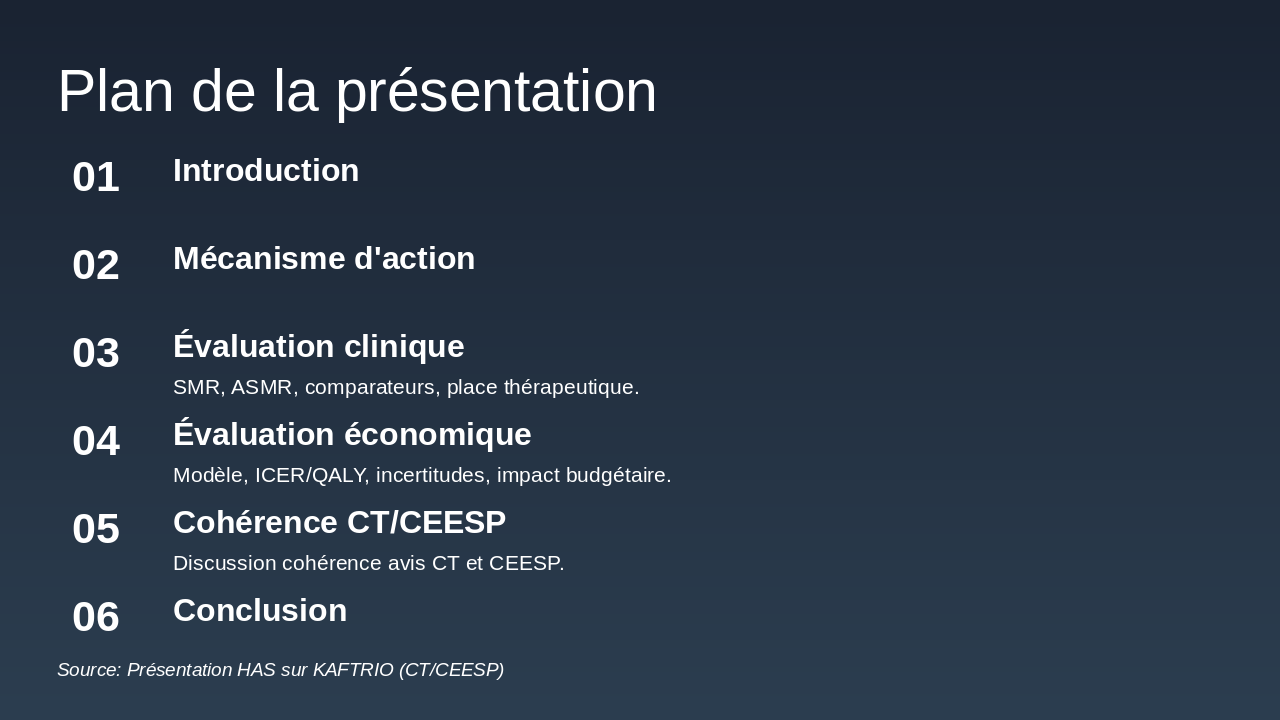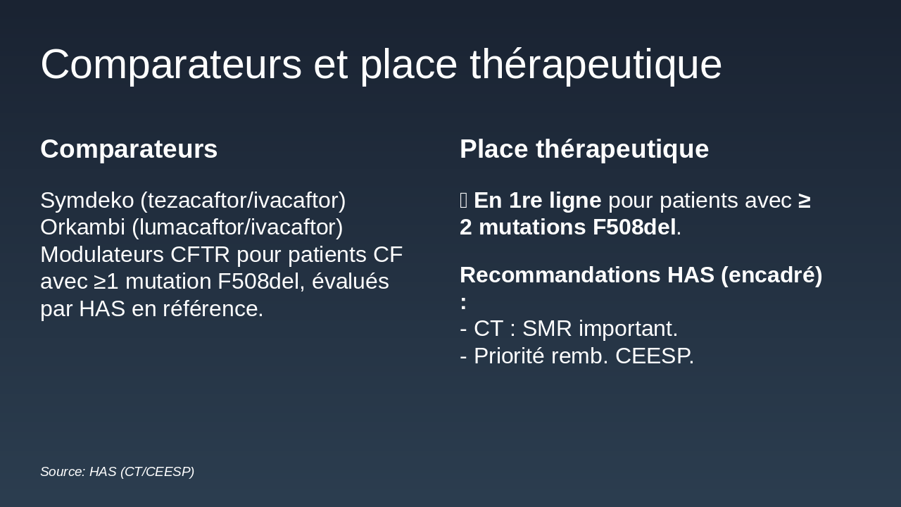 Source: Présentation HAS sur KAFTRIO (CT/CEESP)